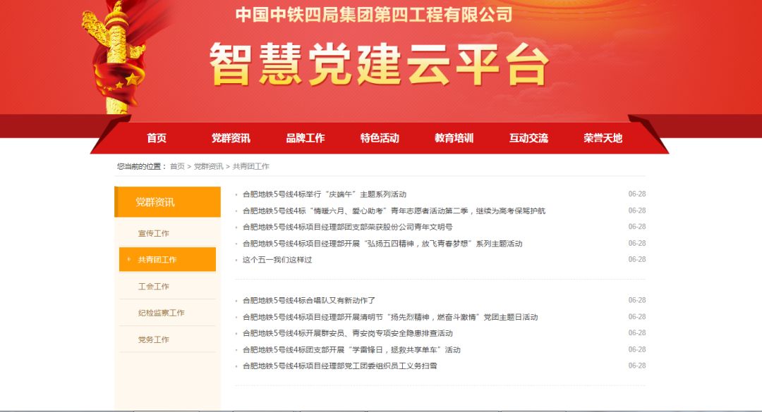 基于以上情况,天恩科技突破创新,以“互联网+党建”模式来破解党建难题、推进党建创新发展、努力开创全面从严治党新局面、架起党建工作新支点。创新研发“智慧党建云平台”,利用互联网技术和信息化手段,助力中铁四局集团四公司党组织实现党群信息管理、思想教育、服务功能一体化建设,党群业务操作便捷化、党群工作交流实时化和党群信息资源共享最大化的总体目标。同时,该平台将成为广大党员和党群工作者了解党群信息、交流党群建设经验、研讨学习党群建设理论的重要载体,以及群众参与党的建设、密切党群关系的重要途径。